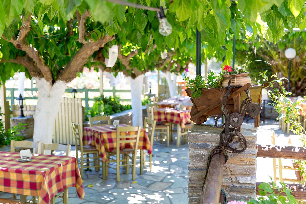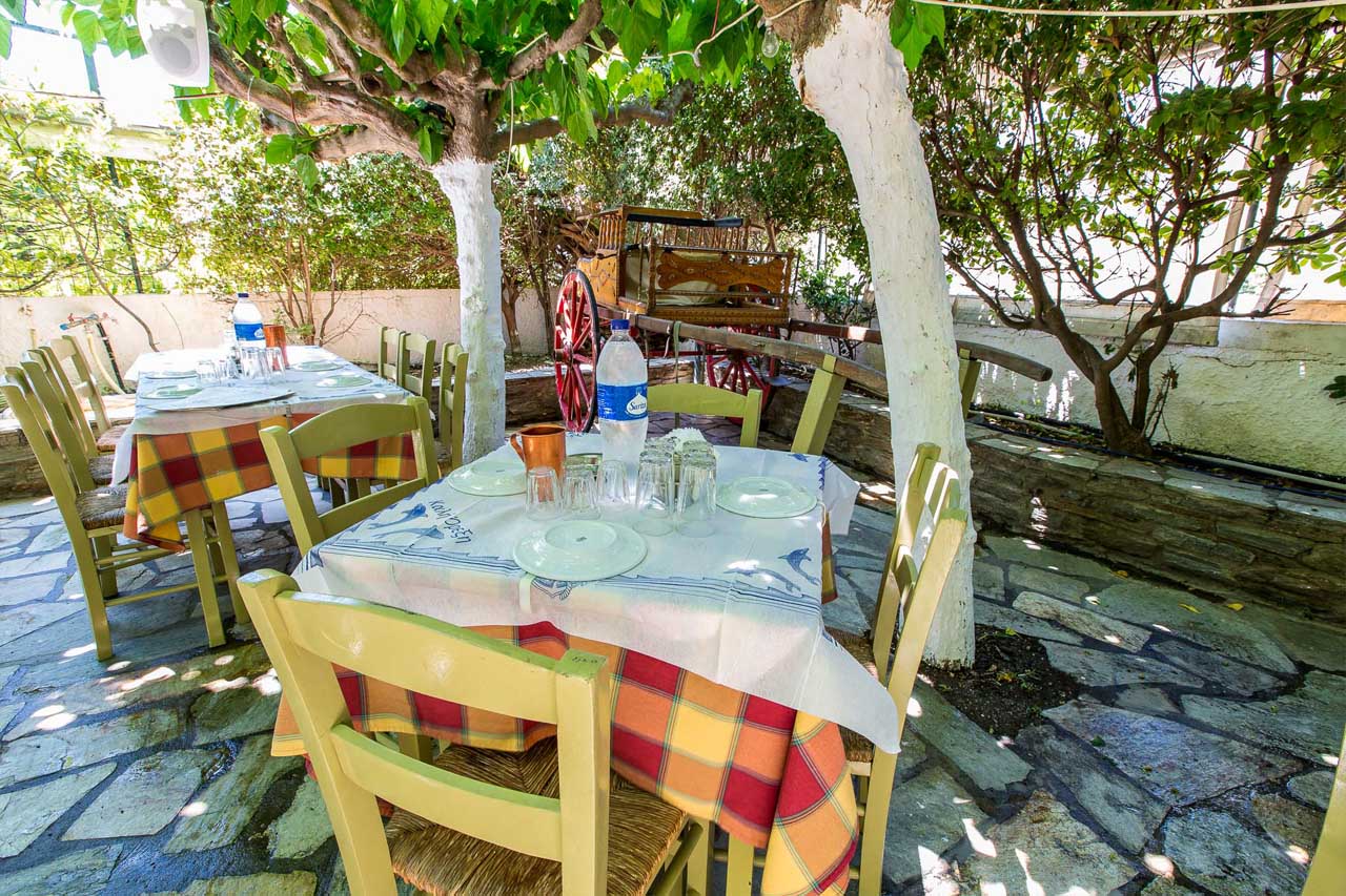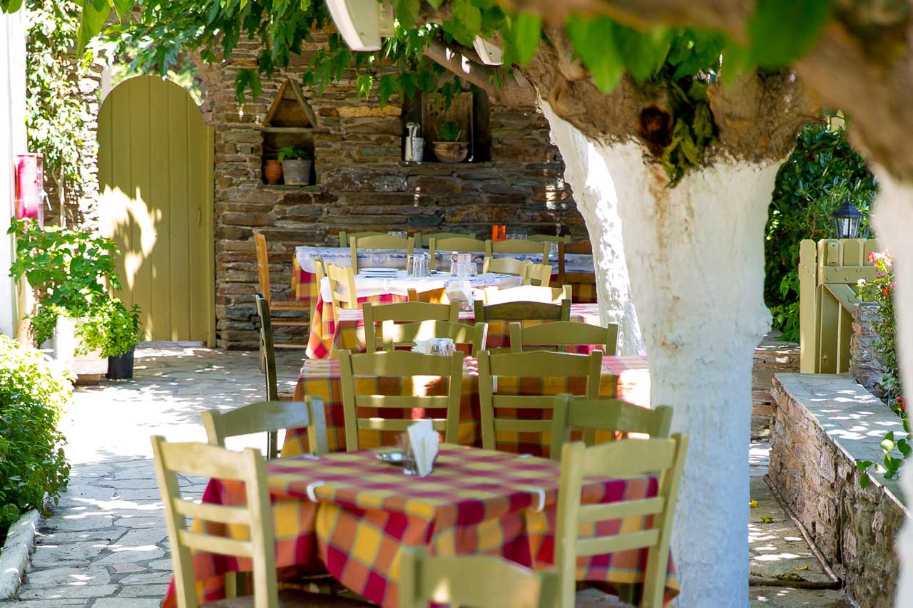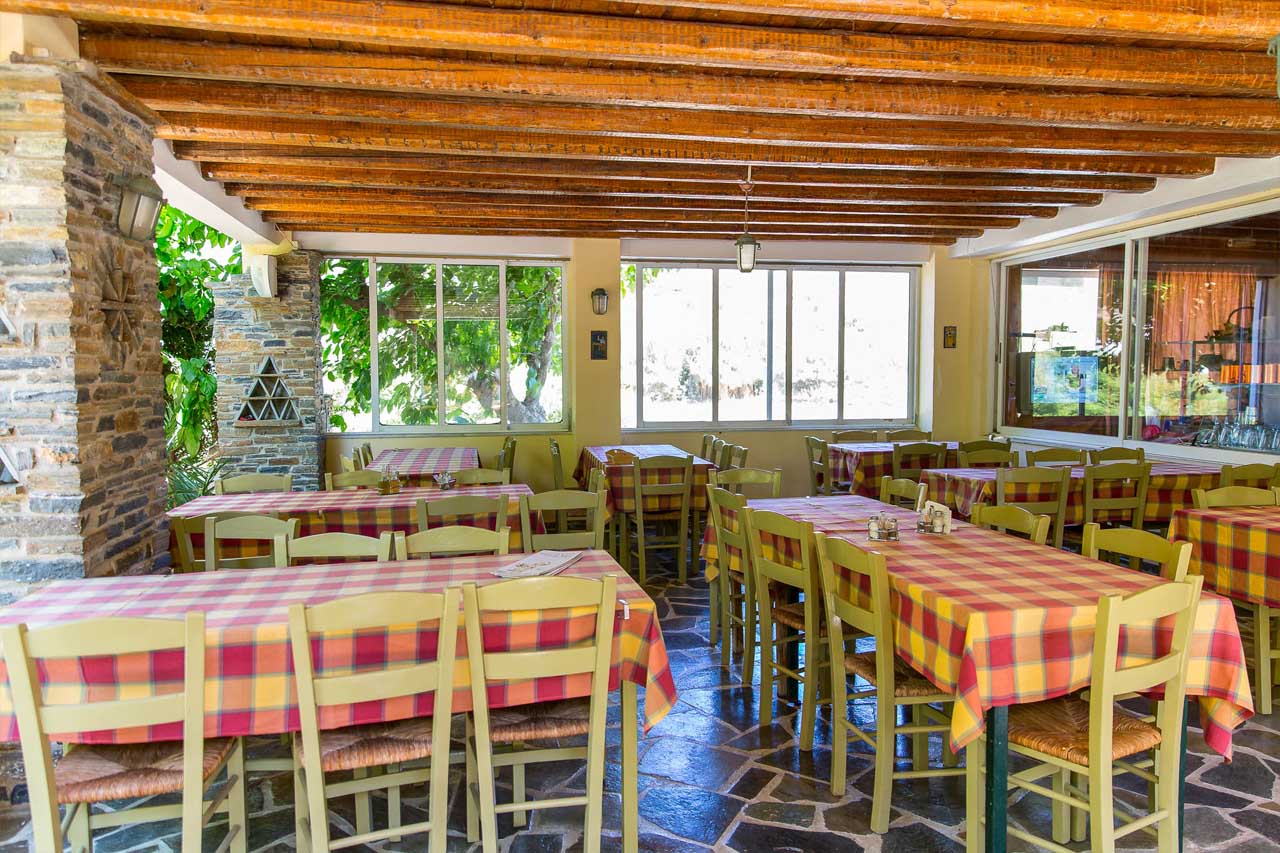 Η βάση της κουζίνας είναι ελληνική και σίγουρα υπάρχουν κυκλαδίτικες επιρροές. Μαγειρευτά, ορεκτικά, της ώρας – ψημένα στα κάρβουνα και ψαρικά – συναποτελούν το άκρως δελεαστικό μενού που προσφέρει το εστιατόριο. Πολλές από αυτές τις ιδιαίτερα φροντισμένες σπεσιαλιτέ είναι τα ντολμαδάκια, οι σπιτικές πίτες που ευωδιάζουν μυρωδικά, το μπιφτέκι, το κοτόπουλο και το αρνί στη λαδόκολλα, τα καλύτερα μαγειρευτά στην Άνδρο.
